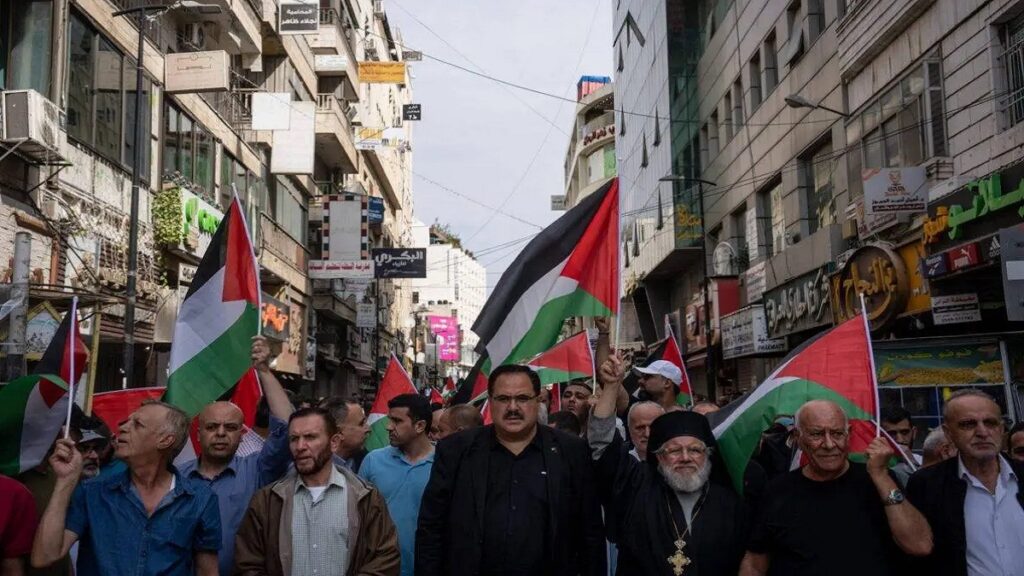 এ সময় রামাল্লার বিভিন্ন স্থানে ফিলিস্তিনের পতাকা হাতে জড়ো হন বিক্ষোভকারীরা। ইসরায়েল বিরোধী শ্লোগানে উত্তাল হয় রাজপথ। এ সময় গাজায় হামলা-আগ্রাসনের তীব্র নিন্দা জানান তারা। আরব বিশ্বের ভূমিকা নিয়েও ক্ষোভ জানান তারা।