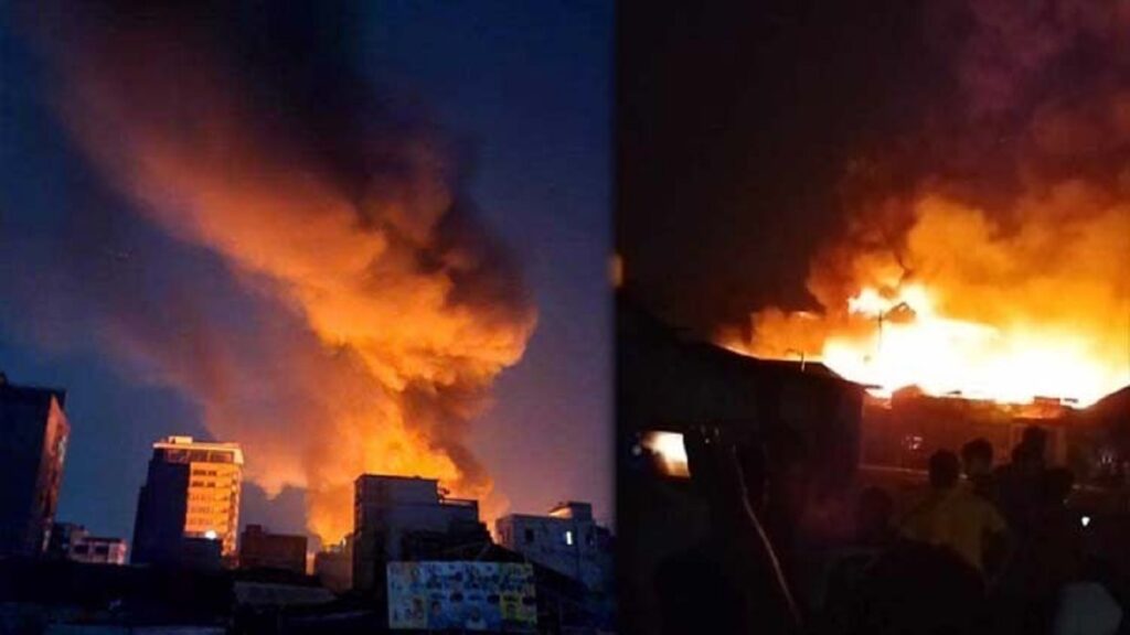 এরই মধ্যে আগুনে ভস্মীভূত হয়ে গেছে বেশ কয়েকটি দোকান। আগুন নিয়ন্ত্রণে কাজ করছে ফায়ার সার্ভিসের ১১টি ইউনিট।