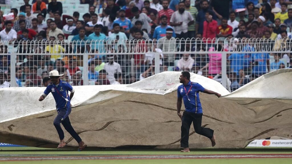 এরপরই শুরু হয় বেরসিক বৃষ্টি। বন্ধ হয়ে যায় খেলা। টিভির পর্দায় বৃষ্টির মাত্রা তেমন বেশি দেখা না গেলেও মেঘের কারণে অন্ধকারাচ্ছান্ন হয়ে আছে পুরো মাঠ। নক-আউট পর্বের ম্যাচগুলোর জন্য অবশ্য রয়েছে রিজার্ভ ডে। তাই প্রথম দিন বৃষ্টিতে খেলা বিঘ্নিত হলে, পরের দিন থাকছে ফল আনার সুযোগ। বৃহস্পতিবার যে অবস্থায় থামবে, পর দিন সেখান থেকেই শুরু হবে বাকি অংশের খেলা।