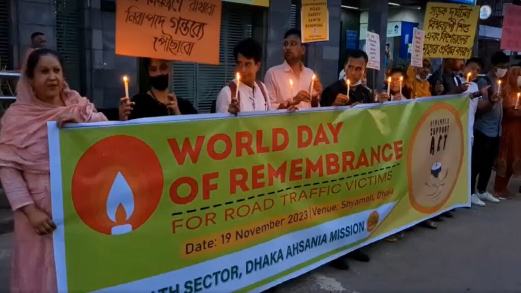‘ওয়ার্ল্ড ডে অফ রিমেম্বারেন্স ফর রোড ট্রাফিক ভিক্টিমস্’ দিবস উপলক্ষে সড়ক দুর্ঘটনায় নিহতদের স্মরণে মোমবাতি প্রজ্বলন ও পদযাত্রা করেছে ঢাকা আহছানিয়া মিশন স্বাস্থ্য সেক্টর।