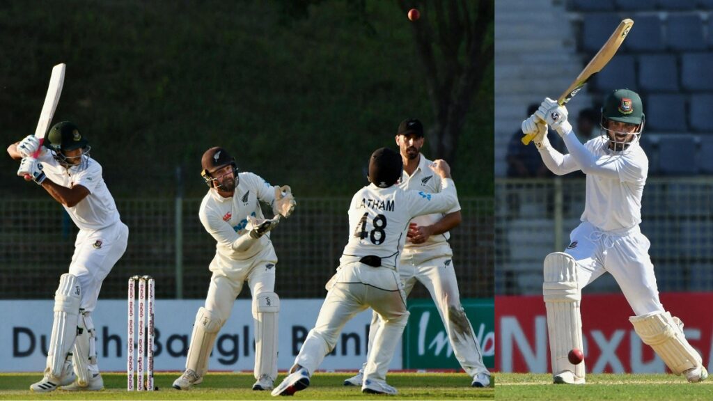 প্রথমেই ওপেনার জাকির হাসানের আউটে টাইগারদের শুরুটা নড়বড়ে করে দেয় কিউইরা। ইনিংসের ১৩তম ওভারে দিনের সেরা বলটায় ১২ রানে আউট হয়ে সাজঘরে ফেরেন তিনি। বাঁ-হাতি স্পিনার এজাজ প্যাটেলের বলে বোল্ড হয়ে যান তিনি। টেস্ট ক্রিকেটের নতুন অধিনায়ক নাজমুল শান্তও ছিলেন অশান্ত। তবে টেস্ট ক্রিকেট যে, ‘ঠাণ্ডা মাথার খেলা’! ফলে অশান্ত ‘শান্ত’কে ৩৭ রানেই শান্ত করে দেন গ্লেন ফিলিপস। ফুলটস বলে ডাউন দ্য উইকেটে এসে উইলিয়ামসনের হাতে সহজ ক্যাচ তুলে দিয়ে সাজঘরে ফেরেন তিনি। শান্ত হন ৩ ছক্কা ও ২ চারে ৩৫ বলে ৩৭ করে।