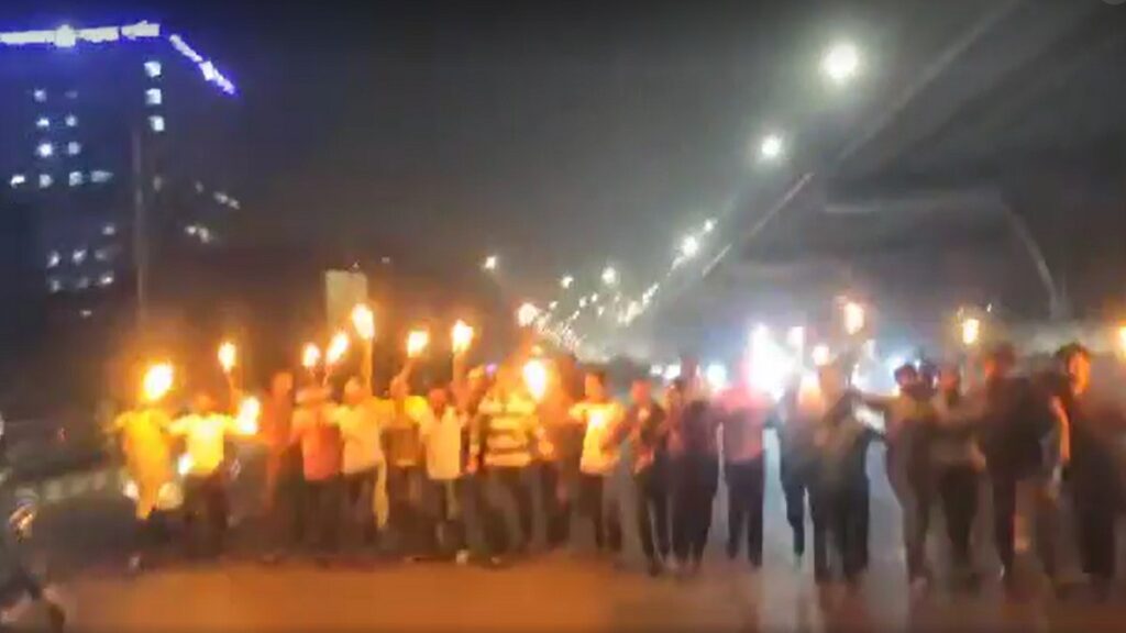 সরকারের পদত্যাগের একদফা ও দ্বাদশ জাতীয় সংসদ নির্বাচনের তফসিল বাতিলের দাবিতে বিএনপি ও সমমনা দলগুলোর ডাকা আগামীকালের ২৪ ঘণ্টার অবরোধ সফলে রাজধানীতে মশাল মিছিল করেছে বিএনপি ও ছাত্রদলের নেতাকর্মীরা।