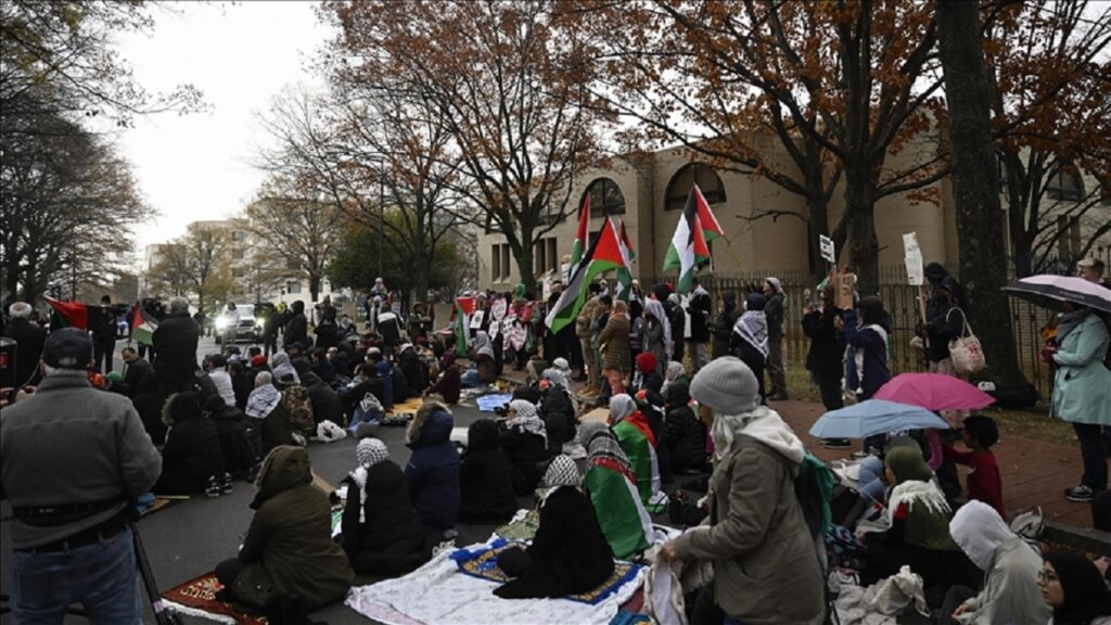 প্রতিবেদনে বলা হয়, ওয়াশিংটনের ইসরায়েলি দূতাবাসের সামনে ফিলিস্তিনি পতাকা, প্ল্যাকার্ড, কেফিয়া হাতে বিক্ষোভ প্রদর্শন করেন তারা। অবিলম্বে গণহত্যা বন্ধের দাবি জানান তারা। নিউইয়র্ক এবং জর্জিয়াতেও নির্মম আগ্রাসনের প্রতিবাদে ফুঁসে ওঠে সাধারণ মানুষ।
