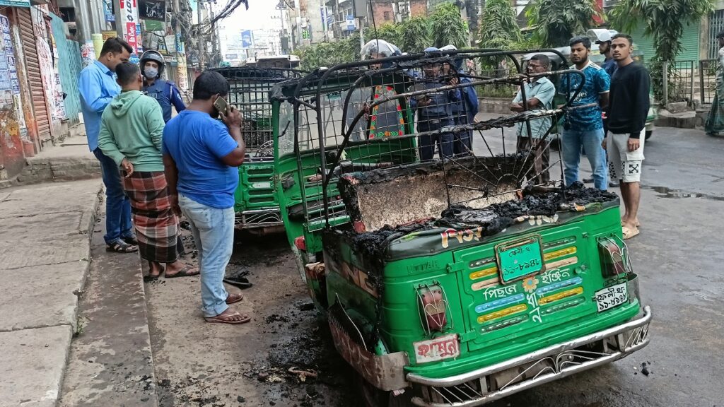 ফেনী শহরের শহীদ শহিদুল্লাহ কায়সার সড়কে দাঁড়িয়ে থাকা দু’টি সিএনজি অটোরিকশায় আগুন দিয়েছে দুর্বৃত্তরা। সোমবার (৪ ডিসেম্বর) সকাল ৭টার দিকে ৮ থেকে ১০ জন পেট্রোল ঢেলে সিএনজি দুইটিতে অগ্নিসংযোগ করে। এ সময় তাদের ইটের আঘাতে ইকবাল হোসেন নামে এক সিএনজি চালক আহত হন।