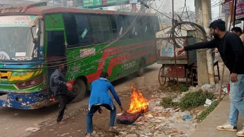 গাজীপুরের কাশিমপুর থানার ওসি সৈয়দ রাফিউল করিম বলেন, যারা বাসে আগুন দিয়েছে পুলিশ তাদের আটক করতে চেষ্টা করছে।