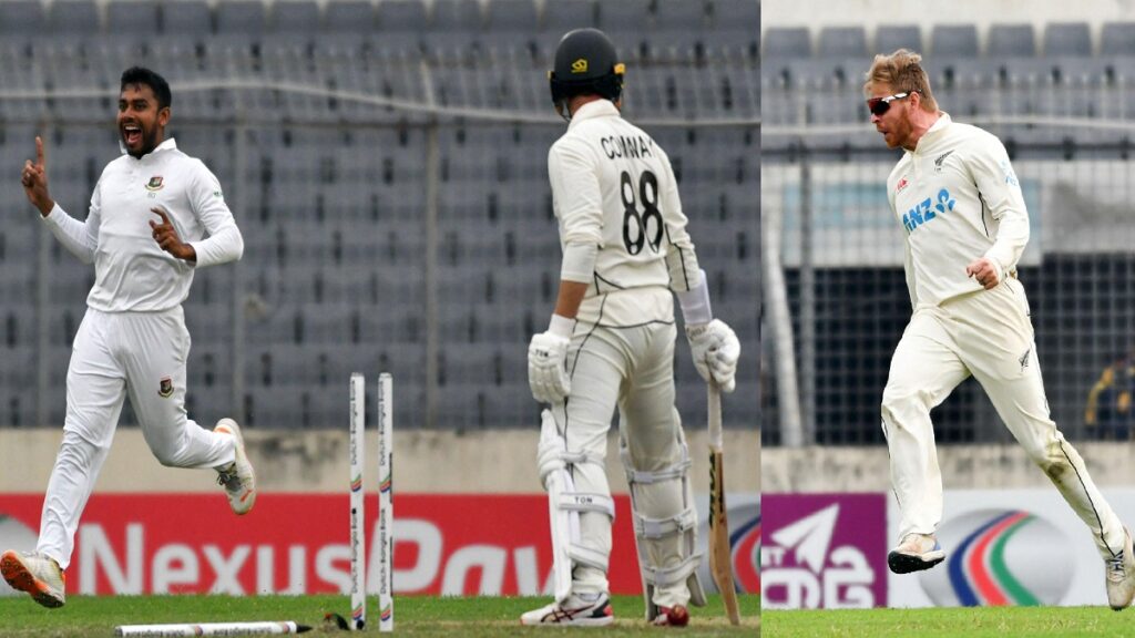তবে প্রথম দিনেই স্পিনারদের স্বর্গরাজ্য হয়ে গেছে মিরপুরের উইকেট। বাংলাদেশের ১০ উইকেটের মধ্যে মুশফিকুর রহিম হয়েছেন ‘অবস্ট্রাকটিং দ্য ফিল্ড’ আউট। আরেকটি উইকেট নিয়েছেন পেসার টিম সাউদি। বাকি আট উইকেট নিয়েছেন তিন স্পিনার। তার মধ্যে মিচেল স্যান্টনার ও গ্লেন ফিলিপস নিয়েছেন ৩টি করে উইকেট। বাকি ২টি উইকেট নিয়েছেন এজাজ প্যাটেল। ফলে ১৭২ রানেই গুঁটিয়ে যায় টাইগাররা।