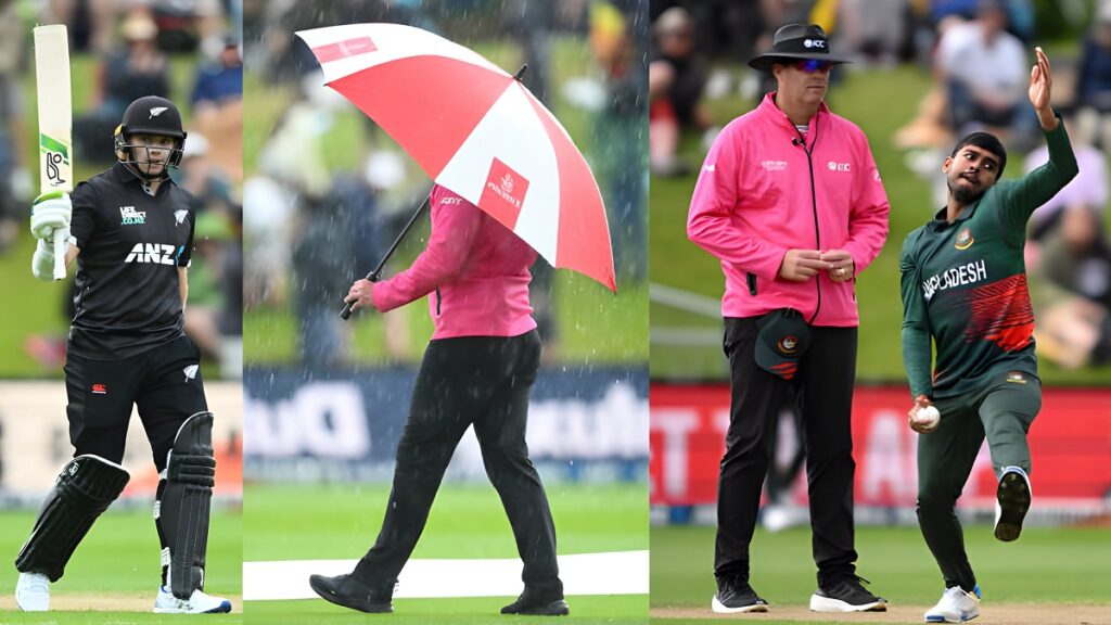 ইনিংসের চতুর্থ বলে প্রথম সাফল্য পায় বাংলাদেশ। শরিফুলের বলে শূন্য রানে উইকেটের পেছনে মুশফিকের হাতে ধরা পড়েন রাচিন রবীন্দ্র। ওভারের শেষ বলে হেনরি নিকোলসকেও শূন্য রানে সাজঘরে ফেরান এই টাইগার পেসার। তবে এরপরে আর কোনো টাইগার বোলার সাফল্য এনে দিতে পারেননি।