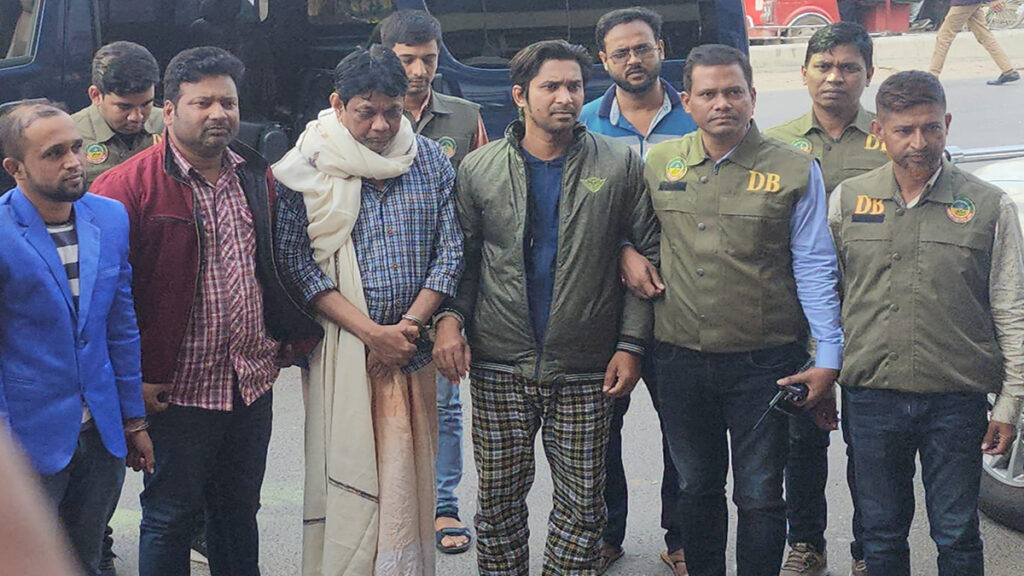 গ্রেফতারকৃতরা হলেন, জান্নাতুল ইসলাম (২৩), রফিকুল ইসলাম, মেহেদী হাসান (২৫), হাসান আজমল ভূঁইয়া (৫০), জুলকার নাইন আশরাফি ওরফে হৃদয় (৩৫), শাহানুর আলম (৫৩), সাইদুল ইসলাম (৩২) ও সোহেল রানা (৩৮)।
