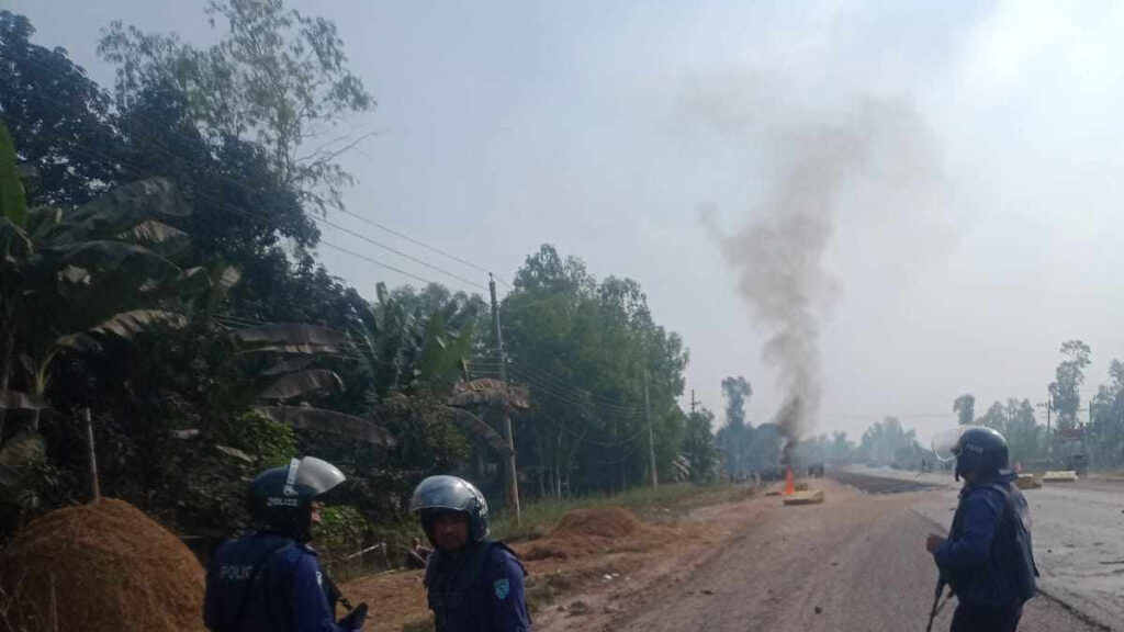 স্থানীয়রা জানায়, হরতালের সমর্থনে দুপুরে জুনদহ এলাকায় বিক্ষোভ মিছিল বের করে বিএনপির নেতাকর্মীরা। এসময় তারা সড়কে টায়ার জ্বালিয়ে বিক্ষোভ করেন। পরে বিক্ষুদ্ধ নেতাকর্মীরা ফরহাদ পরিবহণের একটি বাসে ভাঙচুর চালায়। এছাড়া, সড়কে চলাচলকারী কার্গো ট্রাক ভাঙচুর করা হয়েছে।