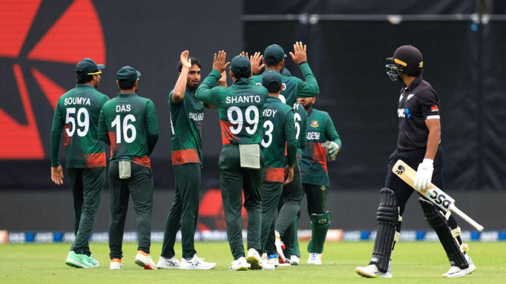 তিন ম্যাচ সিরিজের প্রথম দুই ম্যাচ হেরে খাঁদের কিনারায় থাকা টাইগাররা ঘুড়ে দাঁড়িয়েছে সিরিজের শেষ ম্যাচে। তানজিম সাকিব, শরিফুল আর সৌম্যের বোলিং তোপে ৯৮ রানেই অলআউট হয়ে গেছে কিউইরা। ফলে জয়ের জন্য টাইগারদের দরকার মাত্র ৯৯ রান।