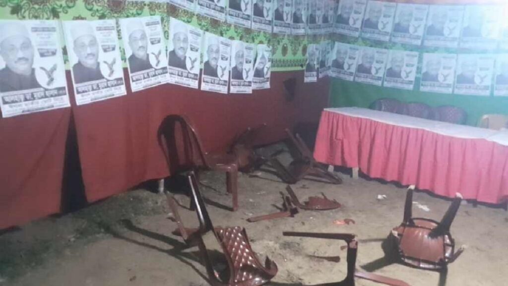 পুলিশ ও স্থানীয় সূত্রে জানা গেছে, রাতে তুচ্ছ ঘটনাকে কেন্দ্র করে তাড়িয়াপাড়া এলাকায় নৌকার প্রার্থী মাহবুবুর রহমান হেলাল ও ঈগল প্রতীকের স্বতন্ত্র প্রার্থী ডা. মুরাদ হাসানের সমর্থকদের মধ্যে কথা কাটাকাটি হয়। একপর্যায়ে তারা সংঘর্ষে লিপ্ত হয়ে পরে। এ সময় পাশে থাকা ডা. মুরাদ হাসানের নির্বাচনী কেন্দ্র ভাংচুর করা হয়। পরে পুলিশ গিয়ে পরিস্থিতি স্বাভাবিক করে।