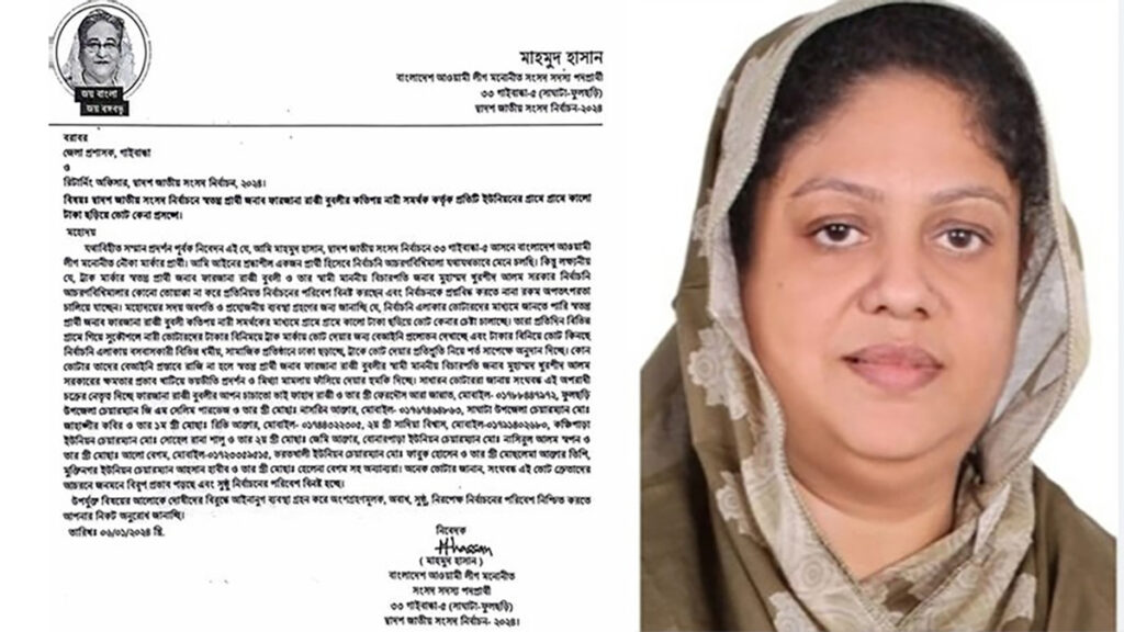 গাইবান্ধা-৫ (সাঘাটা-ফুলছড়ি) আসনের ট্রাক প্রতীকের স্বতন্ত্র প্রার্থী ফারজানা রাব্বী বুবলীর বিরুদ্ধে কালো টাকা ছড়িয়ে ভোট কেনার অভিযোগ তুলেছেন একই আসনের নৌকার প্রার্থী মাহমুদ হাসান রিপন। শনিবার (৬ জানুয়ারি) দুপুরে রিটার্নিং কর্মকর্তার কাছে এ ব্যাপারে লিখিত অভিযোগ করেন আওয়ামী লীগ মনোনীত প্রার্থী।