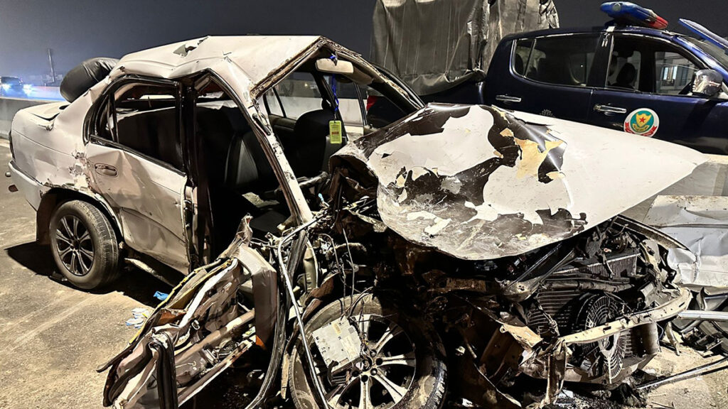 জানা গেছে, একই লেনে চলছিল ভিআইপি পরিবহনের একটি বাস ও প্রাইভেটকারটি। একপর্যায়ে সামনে থাকা প্রাইভেটকারটির চাকা ব্লাস্ট হয়ে সেটি পেছনের দিকে ঘুরে যায়। পরক্ষণেই পেছনে থাকা বাস প্রাইভেটকারটিকে সজোরে আঘাত করে। এতে প্রাইভেটকারের সামনের অংশ দুমড়ে মুচড়ে যায়।