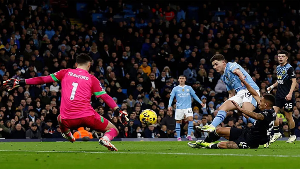 ইতিহাদ স্টেডিয়ামে নিজের জন্মদিনে খেলতে নেমেছিলেন আলভারেজ। জোড়া গোল করেই আর্জেন্টাইন তারকা উদযাপন করলেন জন্মতিথি। ম্যাথিয়াস নুনেসের ক্রস থেকে ১৬ মিনিটে হেডে প্রথম গোল পান আলভারেজ। ২২ মিনিটে ডি ব্রুইনার দারুণ ফ্রি কিক থেকে দেখা পান দ্বিতীয় গোলের। রদ্রি করেন বাকি গোলটি।
