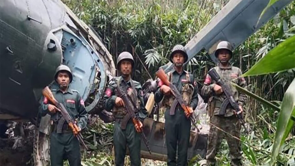 মিয়ানমারের চীন প্রদেশে গুলি করে দুটি সামরিক হেলিকপ্টার ভূপাতিত করার দাবি করেছে আরাকান আর্মি (এএ)। বুধবার (৭ ফেব্রুয়ারি) বাংলাদেশ-মিয়ানমার সীমান্তের খুব কাছে একটি পাহাড়ি এলাকায় এ ঘটনা ঘটে। এ তথ্য জানিয়েছে স্থানীয় গণমাধ্যম ইরাবতি।