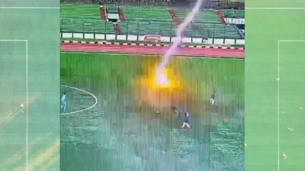 মাঠে গড়াচ্ছিল ফুটবল ম্যাচ। এ সময় হুট করেই আঘাত হানলো বজ্রপাত। আর এতে প্রাণ হারিয়েছেন এক ফুটবলার। শনিবার ঘটনাটি ঘটেছে ইন্দোনেশিয়ায়। এমন ঘটনার একটি ভিডিও ফুটেজ ছড়িয়ে পড়েছে সামাজিক যোগাযোগ মাধ্যমে।