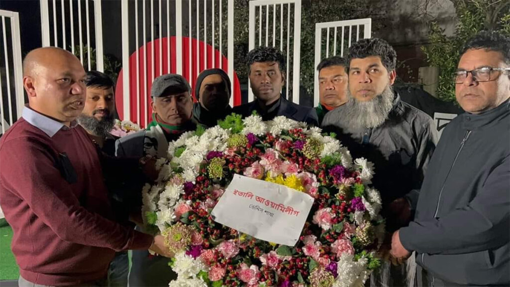পুষ্পস্তবক অর্পণের সময় উপস্থিত ছিলেন ভেনিস শাখা আওয়ামী লীগের সহ-সভাপতি মশিউর রহমান, আক্তার হোসেন, মোশাররফ মোল্লা, সাংগঠনিক সম্পাদক সোহানুর রহমান উজ্জল, মোশারফ হোসেন, আক্তার খান, মোস্তফা মিয়া, তোফাজ্জল, সম্মিলিত নাগরিক কমিটি ভেনিসের সভাপতি আবুল কাশেম শিকদার, তমাল আহমেদসহ অর্ধশতাধিক আওয়ামী লীগের নেতৃবৃন্দ।