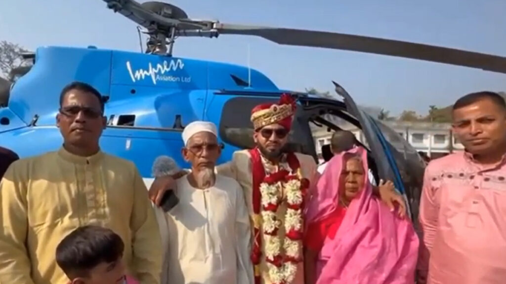 গোপালগঞ্জের কোটালীপাড়ায় বাবা-মায়ের ইচ্ছা পূরণ করতে তাদের সাথে নিয়ে হেলিকপ্টারে চড়ে বিয়ে করেছেন বর। বিয়ে শেষে স্ত্রীকে নিয়ে হেলিকপ্টারে চড়ে নিজ বাড়িতেও এসেছেন তারা। হেলিকপ্টার দেখতে স্থানীয়দের ব্যাপক ভীড় ছিলো।