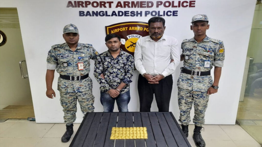 শাহজালাল আন্তর্জাতিক বিমানবন্দরে ৪০ পিস সোনার বারসহ বেসরকারি এয়ারলাইন্সের এক গাড়িচালকসহ ২ জনকে আটক করেছে এপিবিএন ও এনএসআই।