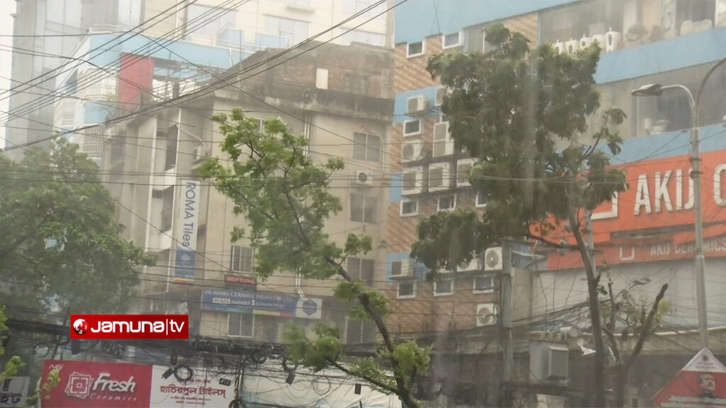 তুমুল বৃষ্টিতে গরম থেকে স্বস্তি মিললেও পথে-ঘাটে থাকা নগরবাসী ভোগান্তিতে পড়েছেন। অনেকে নিরুপায় হয়ে বৃষ্টিতে ভিজেই যান গন্তব্যে। বৃষ্টির কারণে রাজধানীর কোনো কোনো সড়কে তীব্র যানজট সৃষ্টি হয়েছে।