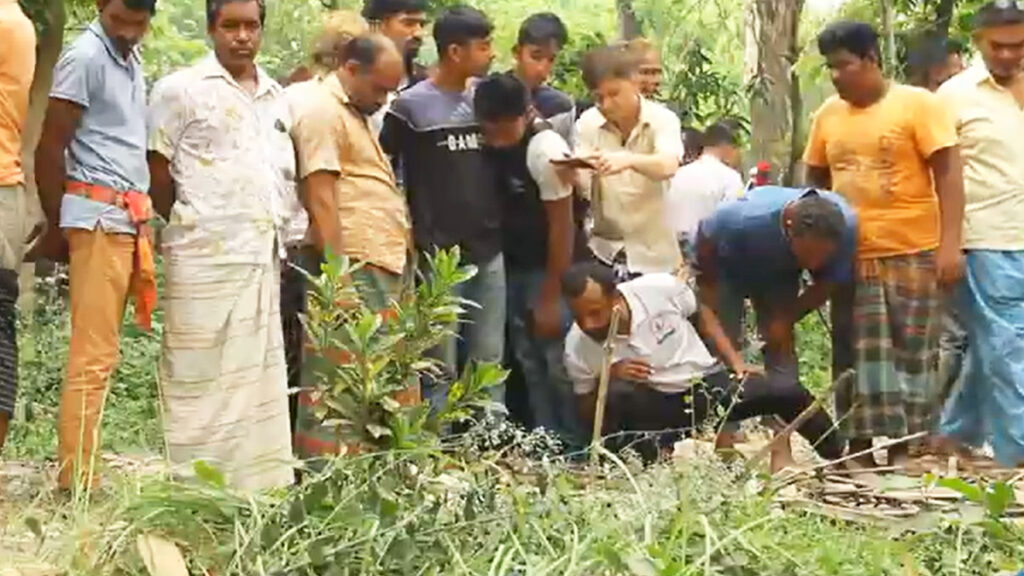 প্রত্যক্ষদর্শী রেখা খাতুন জানান, কয়েকদিন দিন আগে তার ভাই মারা যান। ভাইয়ের জন্য দোয়া ও কবর জিয়ারত করতে কবরস্থানে যাচ্ছিলেন তিনি। এসময় তিনি দেখতে পান কালো পোশাকে ৯ জন মানুষ কবরস্থান থেকে বের হয়ে যাচ্ছেন। তাদের সবার কাধে ছিল স্কুল ব্যাগ। কিছুক্ষণ পর কিছু মুসল্লিরা কবর জিয়ারতে আসলে দেখেন সেখানে কবরের মাটি তোলা রয়েছে। এরপর দেখতে পান কবরের লাশ নেই। মোট ১৫ টি কবরের কঙ্কাল চুরি হয়ে গেছে।