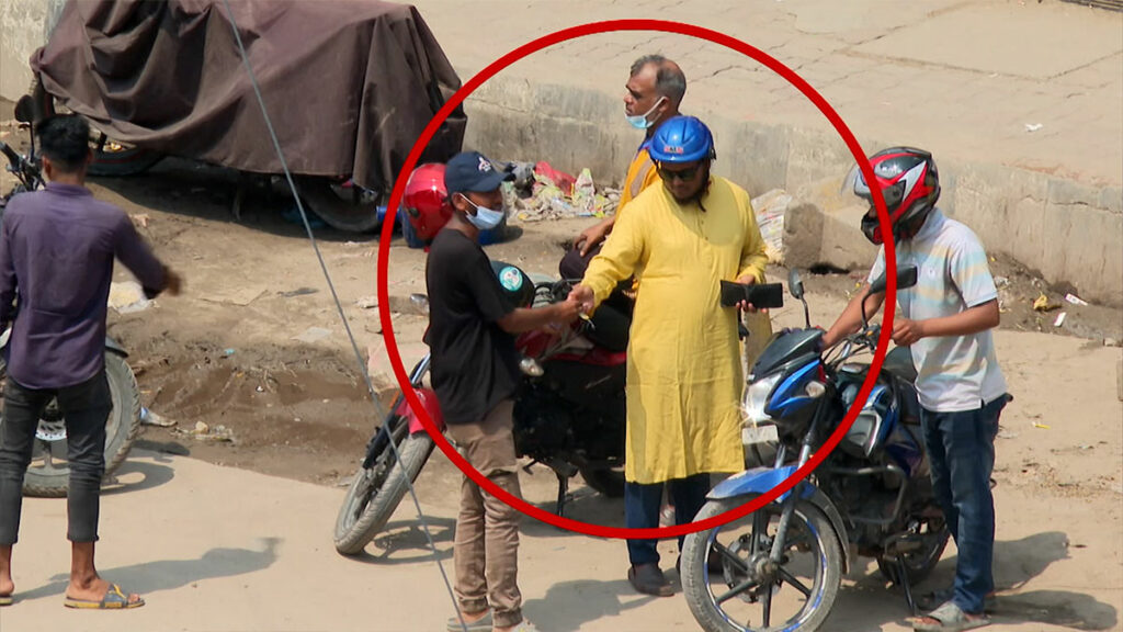 অনুসন্ধানের সূত্রে সম্প্রতি সেখানে গিয়ে মোড়েই বাইকারদের কাছ থেকে চাঁদা তোলার দৃশ্য দেখা যায়। এক যুবক অতি ব্যস্ততায় চাঁদা তুলছে। যেন তার দম ফেলার সময় নেই। পাশের সিএনজি স্ট্যান্ডেও একই চিত্র। সেখানে চাঁদা তুলছে আরেকজন। কীভাবে জানা যাবে চাঁদা আদায়কারীদের পরিচয়? কিছুটা কৌশলী হয়ে তা জানার চেষ্টা চালাই।