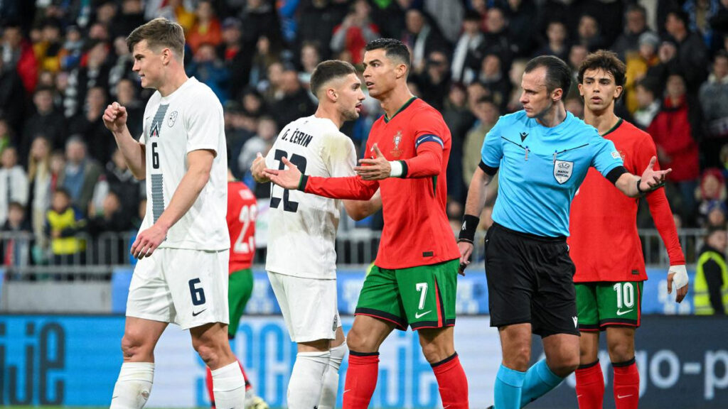 মঙ্গলবার (২৬ মার্চ) দিবাগত রাতে নিজেদের ঘরের মাঠ স্টেডিয়ান স্টোজিস স্টেডিয়ামে পর্তুগালকে আতিথ্য জানায় স্লোভানিয়া। বলার মতো কোনো আক্রমণ ছাড়াই প্রথমার্ধ শেষ করে দু’দল। কোনো দলই শট লক্ষ্যে রাখতে পারেনি। পুরো প্রথমার্ধ পর্তুগাল বল দখলে রাখলেও আক্রমণে গিয়ে খেই হারিয়েছে বারবার। এদিন পুরো ম্যাচেই নিষ্প্রভ ছিলেন রোনালদো। স্বাগতিক স্লোভেনিয়াও বলার মতো কোনো সুযোগই তৈরি করতে পারেনি। গোলশূন্য ড্র নিয়েই বিরতিতে যায় দু’দল।