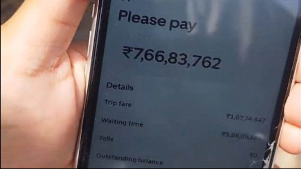 ঘটনাটি ঘটেছে ভারতের উত্তরপ্রদেশের নয়ডায়। গত শুক্রবার উবার নেয়ার সময় ফোনের স্ক্রিনে ভাড়া দেখায় ৮১ টাকা, কিন্তু রাইড শেষ করার পর বিল দেখে যুবকের মাথায় বাজ পড়ে। দীপক টেঙ্গুরিয়া নামক ওই যুবককে ভাড়া দেখায় ৭.৬৬ কোটি রুপি।