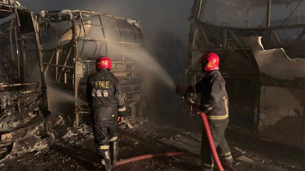 রাজধানীর যাত্রাবাড়ী থানাধীন ধার্মিকপাড়ায় অগ্নি দুর্ঘটনায় লন্ডন এক্সপ্রেসের ১৪টি বাস পুড়ে যাওয়ার ঘটনায় তদন্ত কমিটি গঠন করেছে ফায়ার সার্ভিস। ফায়ার সার্ভিসের ঢাকা বিভাগের উপ-পরিচালক মো. ছালেহ উদ্দিনকে প্রধান করে তিন সদস্যের এই কমিটি গঠন করা হয়েছে।