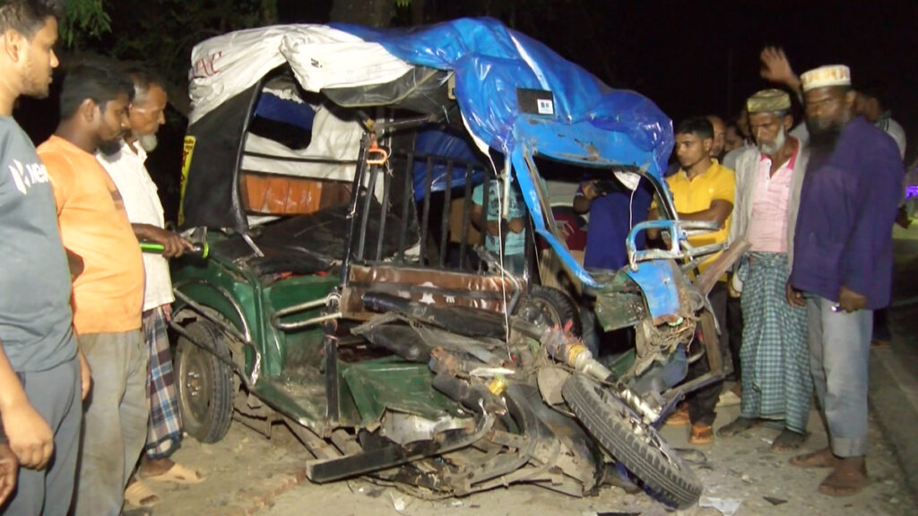 রংপুর মেট্রোপলিটন পুলিশের মাহিগঞ্জ থানার ওসি রওশন কবির জানান, বুধবার (৩ এপ্রিল) রাত ১১টার দিকে জেলার কুড়িগ্রাম আঞ্চলিক মহাসড়কের নব্দীগঞ্জের ব্রিজের কাছে নাবিল পরিবহনের (ঢাকা মেটো-ব -১৪-৬২-০২) ঢাকাগামী কোচ ও কাউনিয়াগামী অটোরিকশার মুখোমুখি সংঘর্ষ হয়। এতে অটোরিকশাটি দুমড়েমুচড়ে যায়।