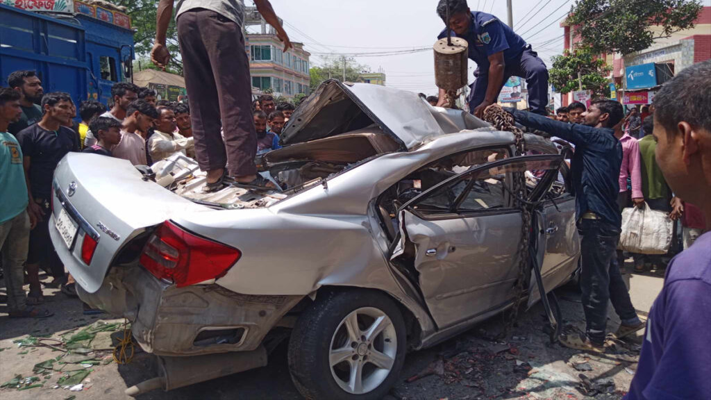 পুলিশ ও প্রত্যক্ষদর্শীরা জানায়, প্রাইভেটকারটি এরুলিয়া বাজার হয়ে নওগার দিকে যাচ্ছিল। এ সময় বিপরীত দিক থেকে আসা একটি বাসের সঙ্গে প্রাইভেটকারটির মুখোমুখি সংঘর্ষ হয়। এতে দুমড়েমুচড়ে যায় গাড়িটি। এতে ঘটনাস্থলেই দুজন মারা যায়।