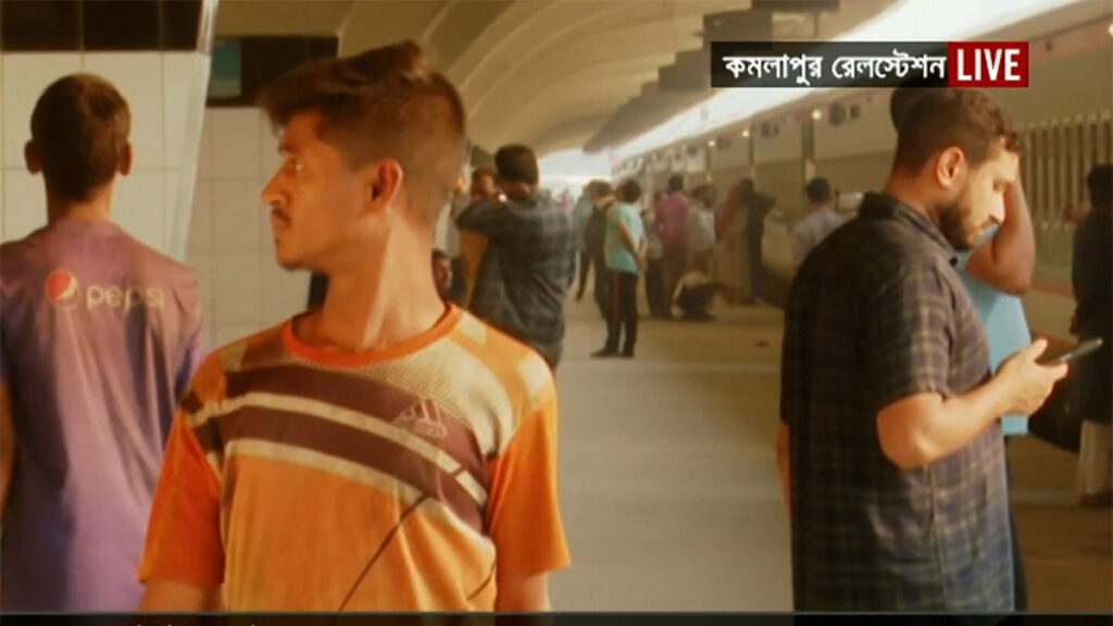 ভোর থেকেই সড়কের পাশাপাশি রেলপথে যাত্রীর দেখা মেলে কমলাপুর স্টেশনে। কমলাপুর রেল স্টেশনে সকাল থেকেই ছিল যাত্রীর চাপ।