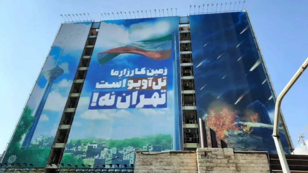 অন্যদিকে, ইরান সরকারের নিজস্ব বিলবোর্ড রয়েছে যাতে লেখা রয়েছে, ” তেল আবিব আমাদের রণক্ষেত্র, তেহরান নয়।”
