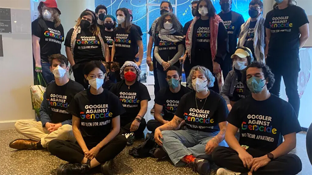 বুধবার (১৭ এপ্রিল) নিউইয়র্ক, ক্যালিফোর্নিয়ায় প্রতিষ্ঠানটির কার্যালয়ের সামনে বিক্ষোভে অংশ নেয় ফিলিস্তিনপন্থী কর্মীরা। কর্তৃপক্ষের নিষেধাজ্ঞা অমান্য করে টানা নয় ঘণ্টা চলে অবস্থান কর্মসূচি। বিক্ষোভকারীদের ছত্রভঙ্গে ধরপাকড় চালায় পুলিশ। গ্রেফতারের ভিডিও ছড়িয়ে পড়ে সামাজিকমাধ্যমে। আন্দোলনে অংশগ্রহণকারীদের বিরুদ্ধে তদন্ত করবে গুগল কর্তৃপক্ষ। রিপোর্ট না পাওয়া পর্যন্ত কাজে যোগ দিতে পারবেন না তারা।