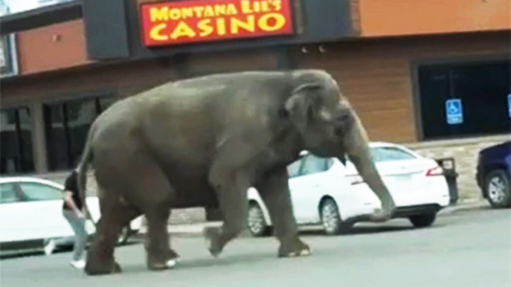 যুক্তরাষ্ট্রের মন্টানা শহরে দেখা গিয়েছে রাস্তায় অবাধে বেড়িয়ে পড়েছে এক হাতি। এমনকি ব্যস্ত সড়ক বা হাইওয়ে এবং জনবহুল আবাসিক এলাকায় হাতিটিকে মুক্তভাবে ঘুরতে দেখা গিয়েছে। সামাজিক যোগাযোগমাধ্যমে হাতির সেই ভিডিও ইতোমধ্যে বেশ ভাইরাল।