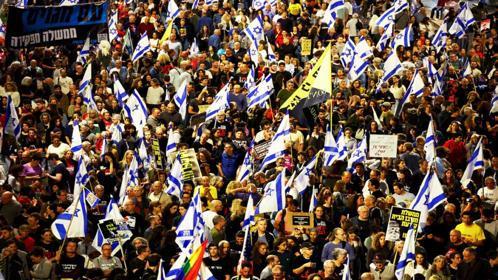 প্রসঙ্গত, শহরের সড়ক অবরোধ করে চলে বিক্ষোভ কর্মসূচী। তাদের হাতে দেখা যায় ইসরায়েলের পতাকা। কফিন হাতে প্রতিবাদ করেন তারা। এসময় তাদের হাতে থাকা ব্যানার, ফেস্টুন ও প্ল্যাকার্ডে বিভিন্ন প্রতিবাদলিপি দেখা যায়।