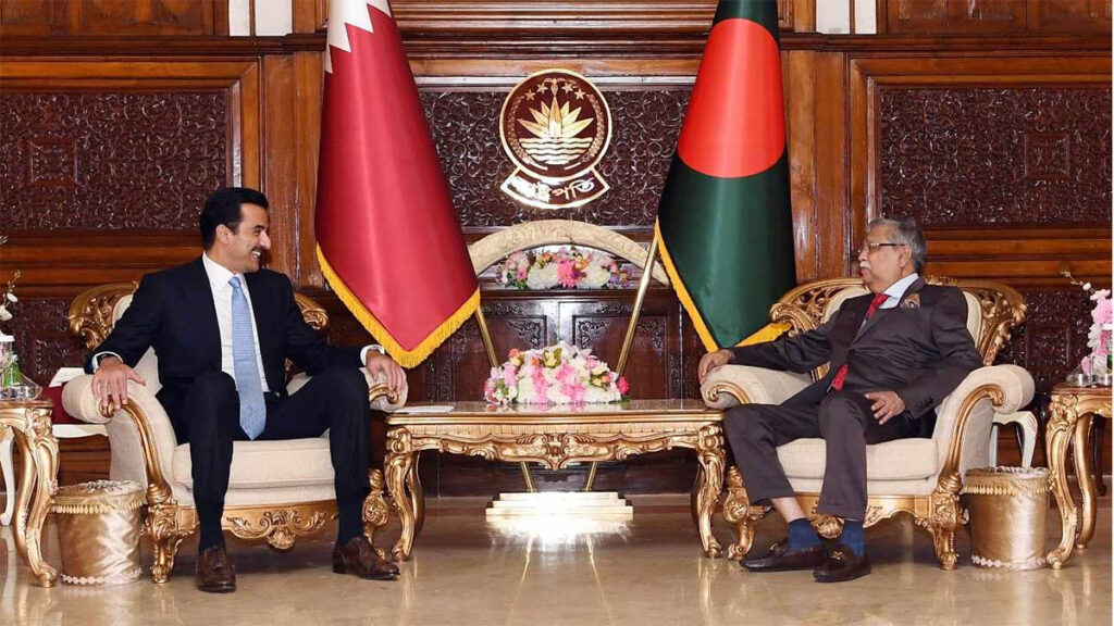 বাংলাদেশ থেকে আরও দক্ষ ও আধা দক্ষ কর্মী নিতে কাতারের আমির শেখ তামিম বিন হামাদ আল থানিকে অনুরোধ করেছেন রাষ্ট্রপতি মো. সাহাবুদ্দিন। আজ মঙ্গলবার (এপ্রিল ২৩) বঙ্গভবনে ঢাকা সফররত কাতারের আমির শেখ তামিম বিন হামাদ আল থানির সঙ্গে সাক্ষাৎকালে রাষ্ট্রপতি এ আহ্বান জানান।