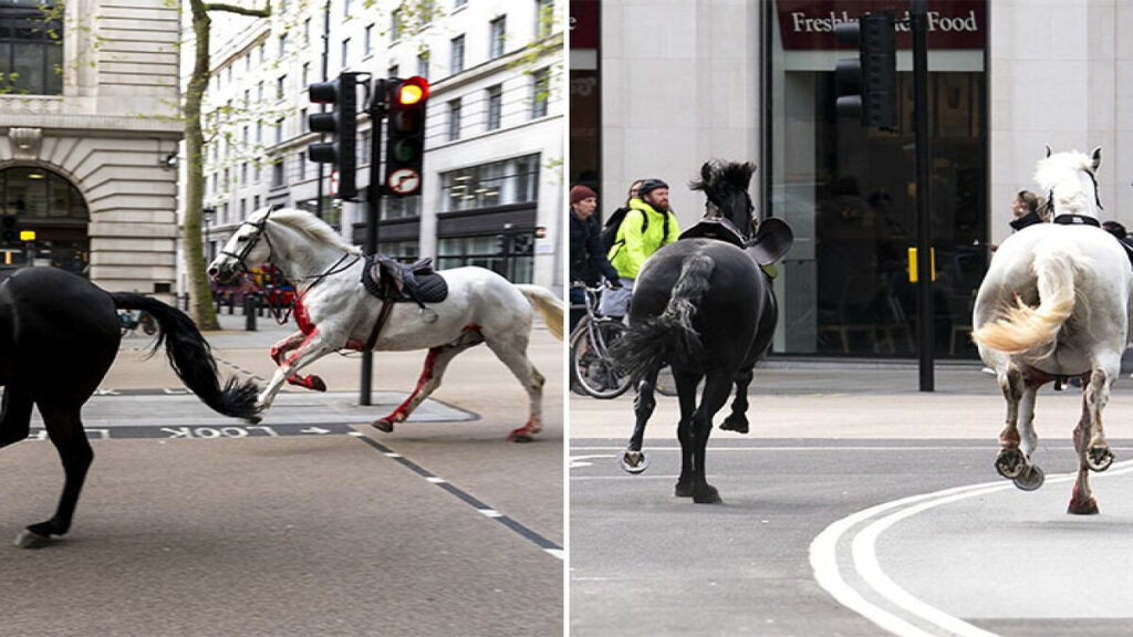 দৌড়াতে শুরু করে লন্ডনের রাস্তায়। এতে বিশৃঙ্খলার সৃষ্টি হয়। ডাবল ডেকার বাস, ট্যাক্সি সহ বিভিন্ন যানবাহনের সঙ্গে সংঘর্ষ হয় ঘোড়ার দলের। একটি ঘোড়ার শরীরে রক্ত দেখা যায়। পথচারীদের মধ্যে তৈরি হয় আতঙ্ক। কিছু সময় পরই ছুটতে থাকা ঘোড়াদের ধরে ফেলে কর্তৃপক্ষ। ব্রিটিশ সামরিক বাহিনীর মুখপাত্র জানিয়েছেন, ক্যাম্পে ফিরিয়ে নেয়া হয়েছে ঘোড়াগুলোকে।
