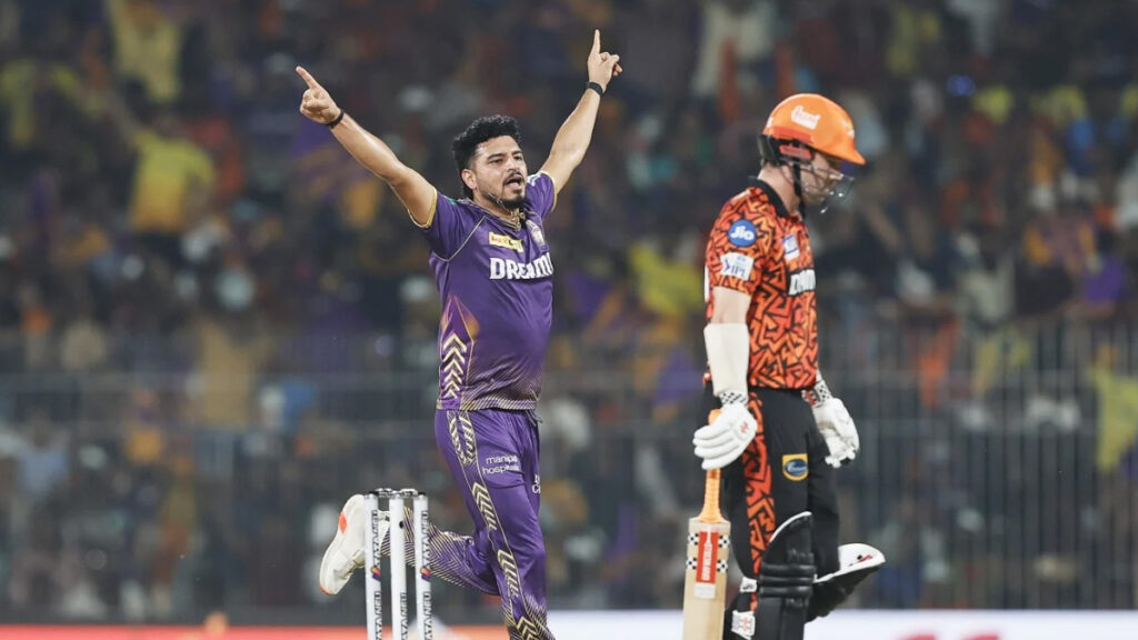 এরপর নিয়মিত বিরতিতে উইকেট হারাতে থাকে হায়দরাবাদ। মার্করাম, শাহবাজ আহমেদরা কেউই সুবিধা করতে পারেননি। হেনরিখ ক্লাসেন থাকায় ভরসা পাচ্ছিলেন তারা। তবে তাকেও এদিন বড় ইনিংস খেলতে দেননি হার্শিত। ডানহাতি এই পেসারের বলে ইনসাইড এজ হয়ে বোল্ড আউট হয়েছেন ক্লাসেন। বাকিদের আসা-যাওয়ার মিছিলে কামিন্স ২৪ রান করলে হায়দরাবাদ অল আউট হয় মাত্র ১১৩ রানে। রাসেল একাই নেন তিনটি উইকেট। বাকিদের মাঝে দু’টি করে উইকেট নিয়েছেন স্টার্ক ও হার্শিত।