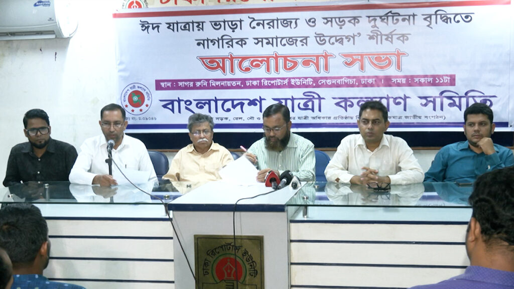 সোমবার (১০ জুন) সকালে ঢাকা রিপোটার্স ইউনিটিতে (ডিআরইউ) এক আলোচনা সভায় এ অভিযোগ করে যাত্রী কল্যাণ সমিতি। ঈদে ঘরমূখী যাত্রীদের হয়রানি, ভাড়া নৈরাজ্য ও সড়ক দুর্ঘটনা কমাতে কার্যকর ব্যবস্থা গ্রহণের দাবি জানিয়েছে সংগঠনটি।