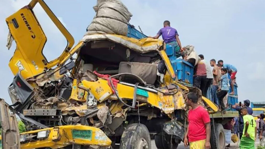 হাইওয়ে পুলিশ ও স্থানীয় সূত্রে জানা যায়, গরু বোঝাই ট্রাকটি দিনাজপুর থেকে কুমিল্লার লাকসামে যাচ্ছিল। এসময় মহাসড়কের পুটিয়া ইউটার্ন এলাকায় গরু বোঝাই ট্রাকটি নিয়ন্ত্রণ হারিয়ে অপর একটি কাভার্ডভ্যানকে পেছন দিক থেকে ধাক্কা দেয়। এতে গরুবোঝাইকৃত ট্রাক ও কাভার্ডভ্যান সড়কের পাশে খাদে পড়ে যায়। এসময় গরু ব্যবসায়ী রাসেলসহ দুইজন নিহত হয়। এ দুর্ঘটনায় আহত ৪ জনকে গৌরিপুর উপজেলা স্বাস্থ্য কমপ্লেক্সে নিয়ে যাওয়া হয়।