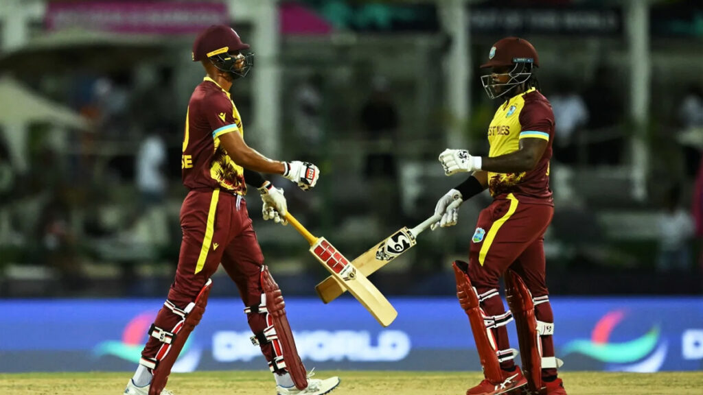 আগে ব্যাট করতে নেমে শুরুতেই ধাক্কা খায় স্বাগতিকরা। দলীয় ৫ রানে ২ উইকেট হারিয়ে রীতিমতো চাপে পড়ে তারা। ওপেনার শাই হোপ ও আরেক ব্যাটার নিকোলাস পুরান সাজঘরে ফেরেন যথাক্রমে শূন্য ও ১ রানে। ক্রিজে আসে রোস্টন চেজ। তাকে সঙ্গে নিয়ে ৮১ রানের জুটি গড়েন ওপেনার কাইল মায়ার্স। দলীয় ৮৬ ও ব্যক্তিগত ৩৫ রানে তাবরেজ শামসির বলে স্টাবসের তালুবন্দি হয়ে প্যাভিলিয়নে ফেরেন মায়ার্স।