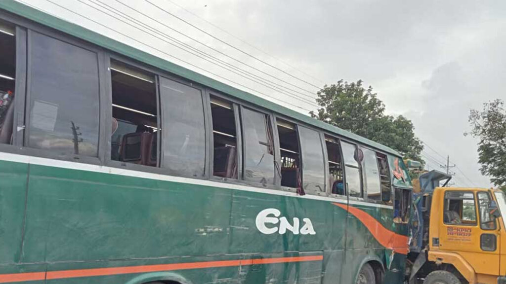 ময়মনসিংহের ভালুকায় বালুবাহী ট্রাকের সঙ্গে এনা পরিবহনের একটি বাসের সংঘর্ষ হয়েছে। এতে বাসচালক স্বপন হোসেন (৫৫) ঘটনাস্থলেই নিহত হয়েছেন। এ ঘটনায় আহত হয়েছেন আরও অন্তত চারজন।