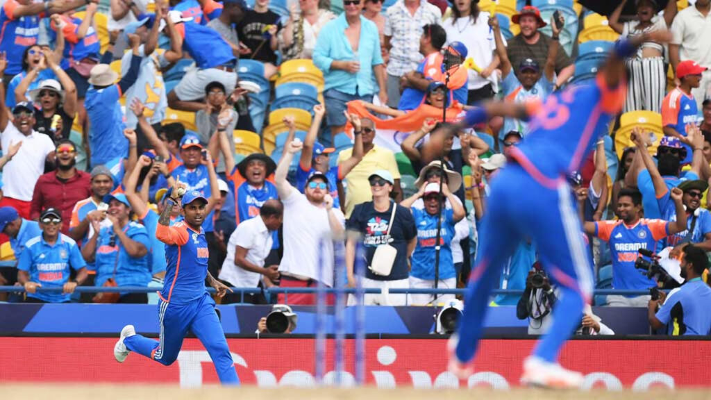 ক্যাচটি নিতে গিয়ে নিজের শারীরিক ভারসাম্যে এক পর্যায়ে বাউন্ডারি লাইনের ওপারেও চলে যান সুরিয়া। তবে বলটি শূন্যে ভাসিয়ে বাউন্ডারি লাইনের ওপাশ থেকে আবারও মাঠে প্রবেশ করেন তিনি। এবার বল অনায়সে ধরে ফেলেন। তবে বাউন্ডারি লাইনের ক্যাচ বিধায় ক্রিস্টাল ক্লিয়ার সিদ্ধান্তের জন্য সেটি রিভিউয়ের জন্য চলে যায় তৃতীয় আম্পায়ারের হাতে। তিনি রিপ্লে দেখে নিশ্চিত করেন, ক্যাচটি বৈধ। প্যাভিলিয়নে ফেরেন মিলার। তার আর হয়ে ওঠা হয়নি ‘কিলার হিরো’। ১৭ বলে ২১ রান করে আউট হন মিলার। এরপর কাগিসো রাবাদার ব্যাটের কানায় লেগে একটি চার এলেও কঠি সমীকরণ মেলাতে পারেনি দক্ষিণ আফ্রিকা। ৭ রানে জিতে চ্যাম্পিয়ন হয় ভারত