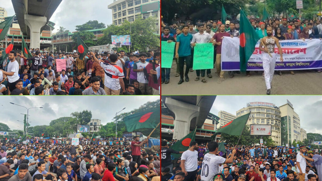 শিক্ষার্থীরা সরকারি চাকরিতে মুক্তিযোদ্ধা কোটা বাতিলসহ ৪টি দাবি তুলে ধরেন। এর আগে, গতকাল বিকালে একই দাবিতে পদযাত্রা করেন প্রায় ৫ হাজার শিক্ষার্থী। পরে শাহবাগ মোড়ে এক ঘণ্টা অবস্থান করেছিলেন আন্দোলনরত শিক্ষার্থীরা।