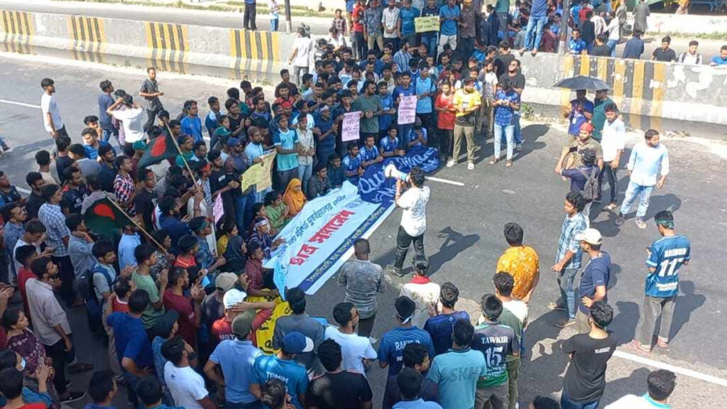 চাকরিতে কোটা সংস্কারের দাবিতে আজও ঢাকা-আরিচা মহাসড়ক অবরোধ করে বিক্ষোভ করছে জাহাঙ্গীরনগর বিশ্ববিদ্যালয়ের শিক্ষার্থীরা। বুধবার (১০ জুলাই) সকাল সাড়ে ১০ টার দিকে বিশ্ববিদ্যালয়ের প্রধান সড়কের সামনের সড়ক অবরোধ করে বিক্ষোভ শুরু করেন শিক্ষার্থীরা।