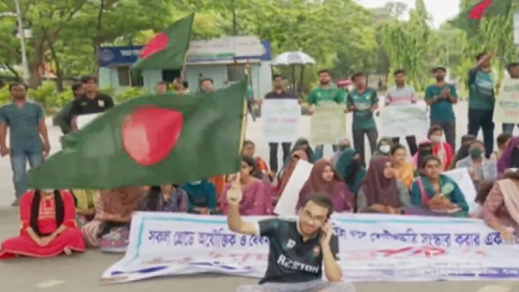 কোটা সংস্কারের দাবিতে শিক্ষার্থীদের ডাকা ‘বাংলা ব্লকেড’ আন্দোলনের আওতায় রাজধানীর আগারগাঁও এলাকায় মূল সড়ক অবরোধ করে বিক্ষোভ করছেন শেরে বাংলা কৃষি বিশ্ববিদ্যালয়ের আন্দোলনরত শিক্ষার্থীরা। বুধবার (১০ জুলাই) সকাল সাড়ে ১১টার দিকে বিশ্ববিদ্যালয় থেকে একটি মিছিল বের হয়ে মেট্রোরেল স্টেশন এলাকার সড়ক অবরোধ করে তারা।
