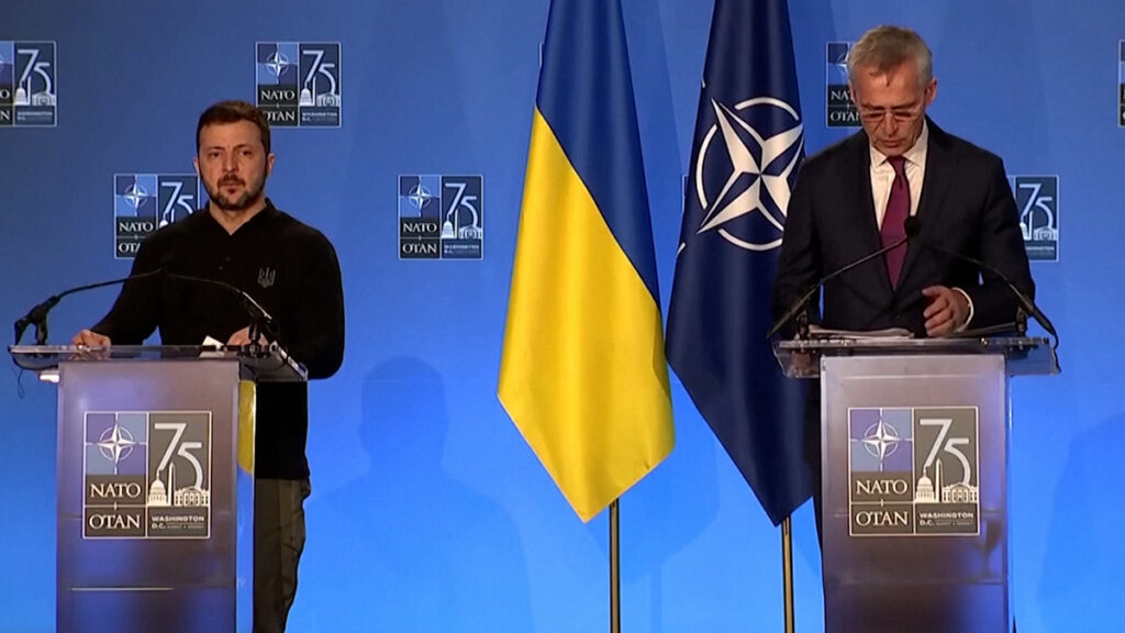 ওয়াশিংটনে অনুষ্ঠিত হওয়া ন্যাটো মহাসচিব জেন্স স্টলটেনবার্গের সাথে যৌথ সংবাদ সম্মেলনে জেলেনস্কি বলেন, ইউক্রেন লক্ষ্যের খুব কাছে রয়েছে। চূড়ান্ত সদস্যপদ পেতে এখন শুধু দরকার ন্যাটোর আনুষ্ঠানিক আমন্ত্রণ।