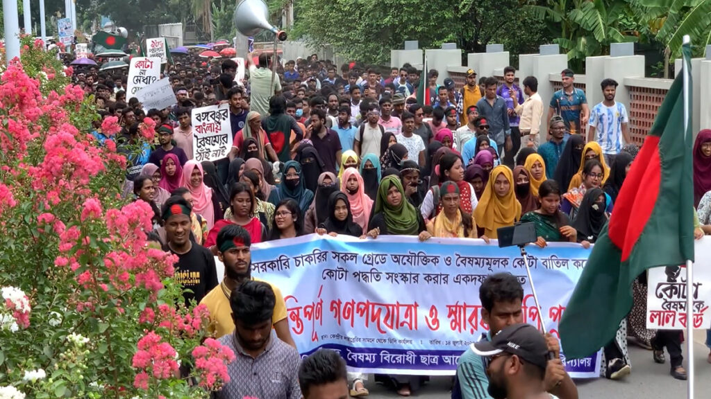 এর আগে, বেলা সোয়া ১১টায় রাজশাহী বিশ্ববিদ্যালয়ের কেন্দ্রীয় গ্রন্থাগারের সামনে থেকে সরকারি চাকরির সকল গ্রেডে অযৌক্তিক ও বৈষম্যমূলক কোটা বাতিল করে কোটা পদ্ধতি সংস্কার করার এক দফা দাবিতে শিক্ষার্থীরা গণপদযাত্রা শুরু করেন। কাজলা গেট হয়ে সাহেব বাজার হয়ে ৮ কিলোমিটার পায়ে হেঁটে জেলা প্রশাসকের কার্যালয়ে পৌঁছান তারা। এ সময় সড়কে ব্যাপক যানজট তৈরি হয়। ভোগান্তিতে পড়েন নগরবাসী।
