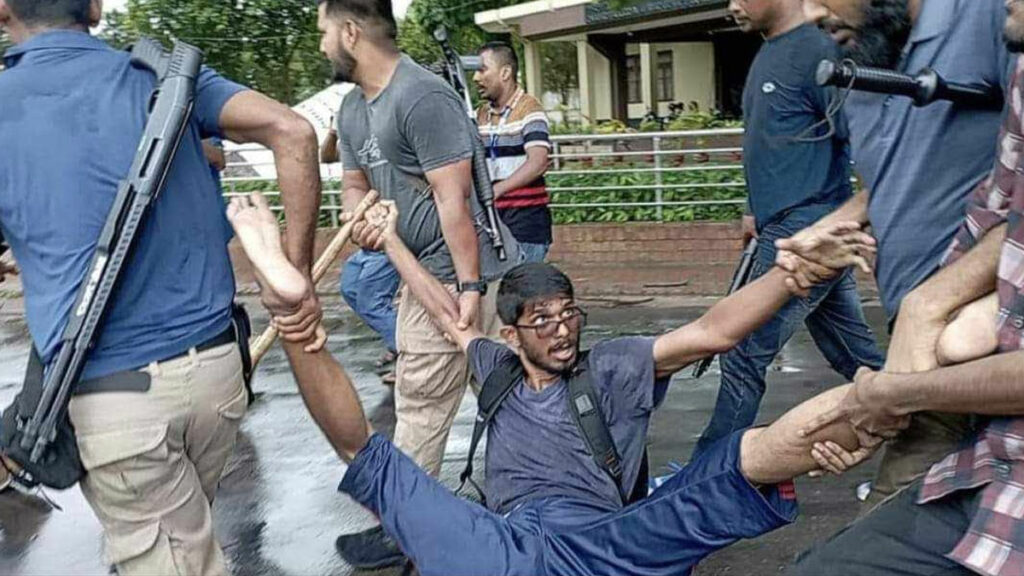 পরে শিক্ষার্থীদের চিৎকারে সেখানে শিক্ষকরা উপস্থিত হয়ে ছাত্রদের ছাড়িয়ে নেয়ার চেষ্টা করেন। এতে শিক্ষক-শিক্ষার্থীদের সাথে সাদা পোশাকের পুলিশের ব্যাপক ধস্তাধস্তি বেধে যায়। এক পর্যায়ে বিশ্ববিদ্যালয় প্রশাসন ও শিক্ষকদের হস্তক্ষেপে আটককৃতদের ছেড়ে দিতে বাধ্য হয় পুলিশ।